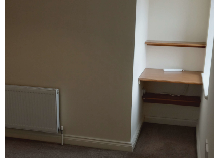 Downstairs the front door opens onto a small hallway leading through a door to the lounge/kitchen with a large under-stair cupboard. Upstairs is the main double bedroom with built in wardrobe storage and en-suite shower room.